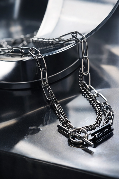 A strong silver-tone chain necklace crafted with oversized interlinked segments for an edgy, contemporary statement look.